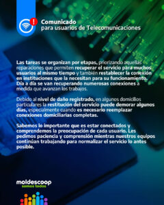 Desde Moldescoop informamos sobre los daños ocasionados por el temporal en el servicio de telecomunicaciones y las tareas que estamos realizando para restablecerlo.