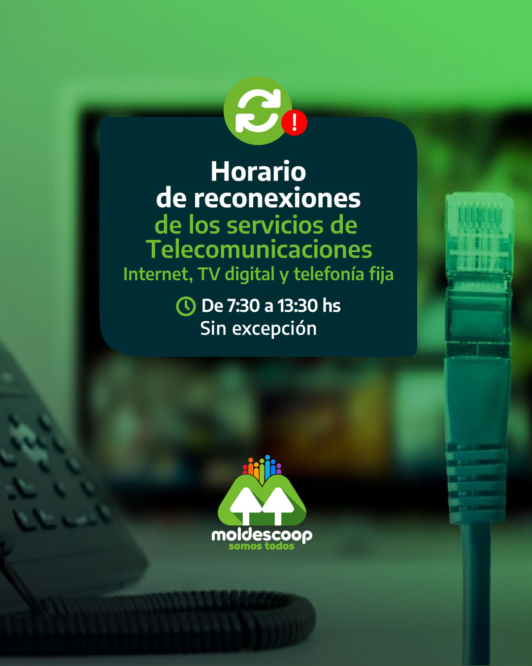 Te recordamos que todas las reconexiones de internet, TV digital y telefonía fija se realizan exclusivamente durante la mañana, en […]